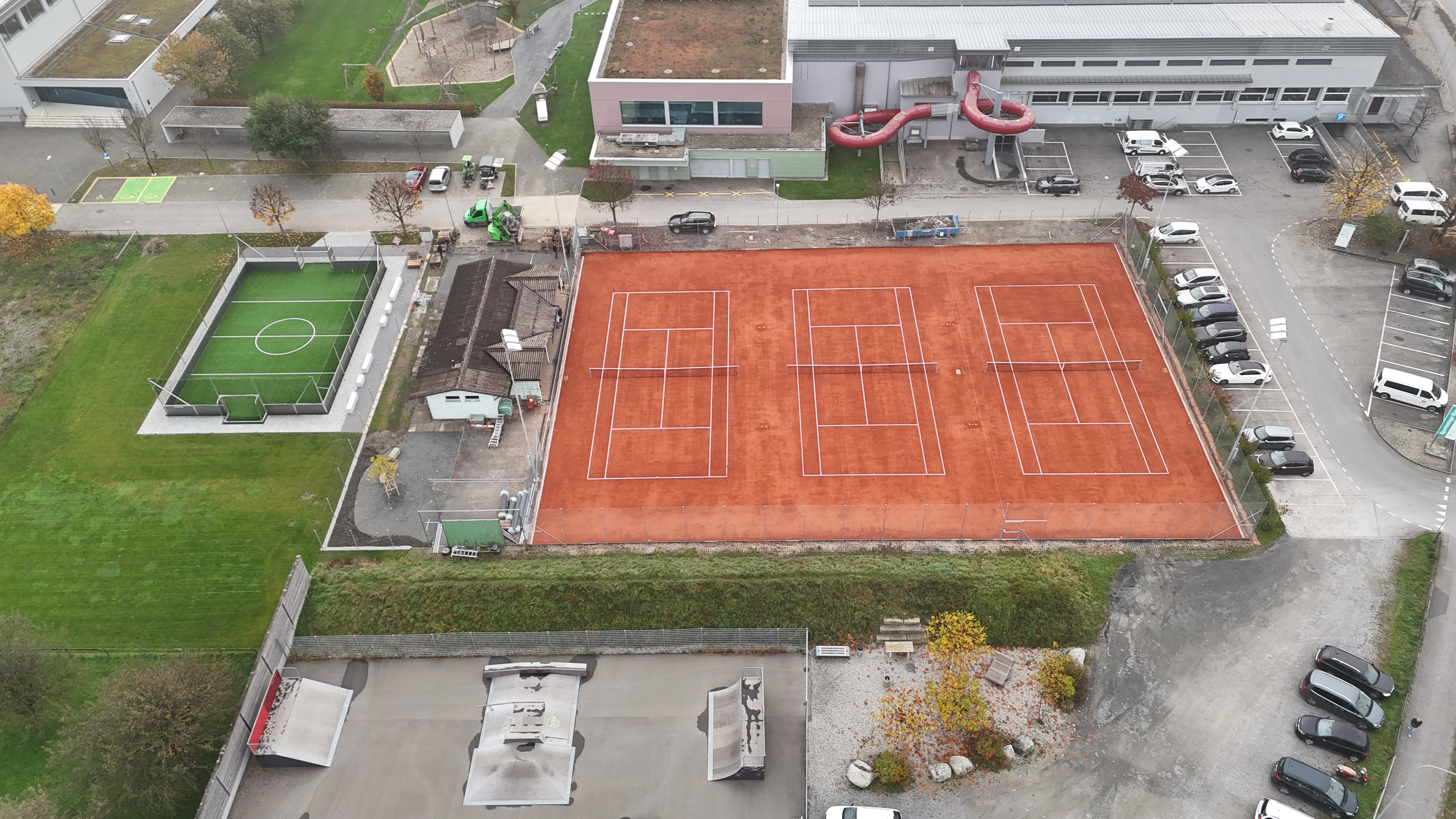 Umbau der drei bestehenden Sandplätzen auf Swiss Court® mit höhenverstellbarem Liniensystem und neuster Bewässerungsanlage.